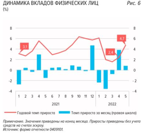 В мае продолжали расти вклады физлиц. Июнь, видимо, станет первым месяцем стагнации, а затем начнется снижение — и одновременно рост потребительских расходов.